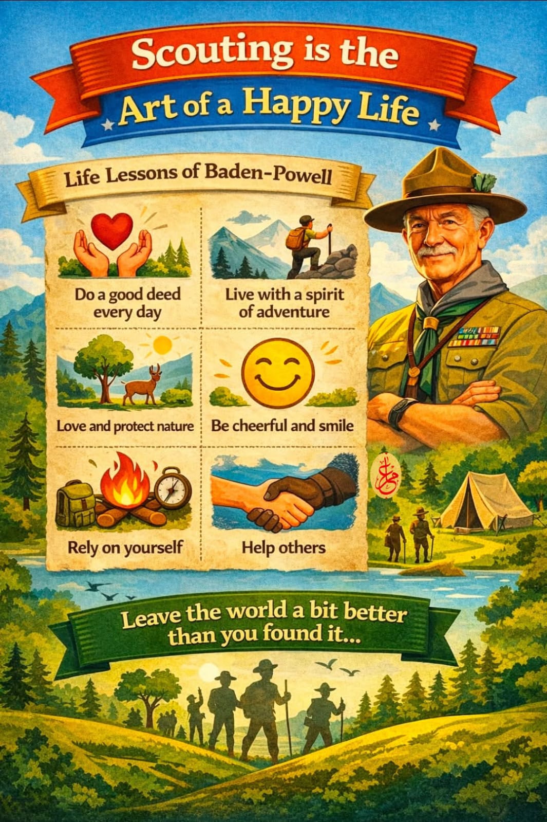 The Scouts and Guides movement is based on the principle of “Duty to God, Duty to Others, and Duty to Self.” It emphasizes learning through activities, outdoor experiences, teamwork, and community service. The philosophy is not only to train young minds in discipline and leadership but also to prepare them as responsible citizens who contribute to society.